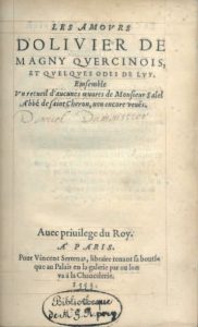 MAGNY, Olivier de (1529-1561). ++Les Amours d’Olivier de Magny Quercinois et quelques odes de luy. Ensemble un recueil d’aucunes Oeuvres de Monsieur Salel Abbé de Saint Cheron, non encore veues