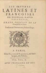RAPIN, Nicolas (1535-1608). ++Les Oeuvres latines et françoises de Nicolas Rapin, Poitevin, Grand Prevost de la Connestablie de France.