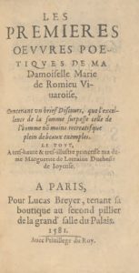 ROMIEU, Marie de (1545 – 1590). ++Les premières Oeuvres poétiques . Paris : Lucas Breyer, 1581 …