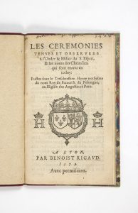 [SAINT-ESPRIT]. Les Ceremonies tenves et observees à l'Ordre & Milice du S. Esprit, et les noms des Cheualiers qui sont entrez en iceluy. — Faictes souz le Treschrestien Henry troisiesme du nom Roy de France & de Polongne, en l'Eglise des...
