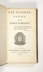 SAINT-LAMBERT (M. de). — • Les Saisons, poëme. — •• Œuvres mêlées. — A Paris, De l'Imprimerie de P. Didot l'Aîné, an III - 1795. — 2 volumes in-16, maroquin vert, triple filet doré encadrant les plats, large fleuron doré au...