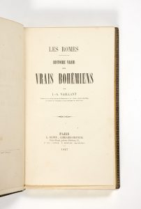 [BOHÉMIENS]. — VAILLANT (Jean Alexandre). — Les Romes. — Histoire vraie des vrais Bohémiens. — Paris, E. Dentu, Libraire-Éditeur, 1857. — In-8°, maroquin brun janséniste, dos à nerfs, tranches dorées (Chambolle-Duru).