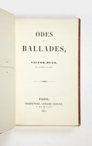 HUGO (Victor). — Odes et ballades. — Paris, Charpentier, Libraire-Éditeur, 1845. — In-12 (110 x 176 mm), maroquin rouge, triple filet doré encadrant les plats, dos à nerfs orné de caissons, tranches dorées (Thibaron).