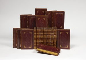 La FONTAINE (Jean de). — Œuvres complètes?[…]. — À Paris, Chez A. Nepveu, Libraire, 1820-1821. — 18 volumes in-12, maroquin brun-rouge à grain long, filets dorés et fine roulette dentelée à froid encadrant les plats, fleuron aux...