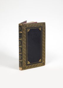 fleurons dorés ornant les plats, dos à nerfs orné, tranches dorées, doublure et gardes de moire rouge (Rel. P. Lefebvre).