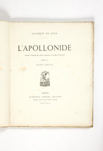 LECONTE de LISLE (Charles Marie). — L'Apollonide. — Drame lyrique en trois parties et cinq tableaux. — Paris, Alphonse Lemerre, Éditeur, 1888. — In-4° broché.
