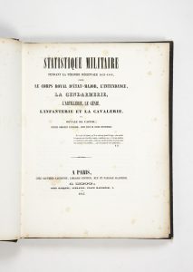 [MILITARIA]. DEVALZ de CAFFOL (Jean). — Statistique militaire pendant la période décennale 1831-1841, pour le Corps royal d'État-Major, l'Intendance, la Gendarmerie, l'Artillerie, le Génie, l'Infanterie et la Cavalerie. — A Paris, Chez...