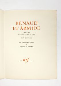 COCTEAU (Jean). — Renaud et Armide. — Tragédie en trois actes, en vers. — Paris, Nrf, 1945. — In-4° en feuilles, sous couverture rempliée illustrée en couleurs, chemise et étui de l'éditeur.
