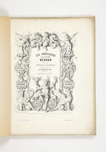 [GOETHE (Johann Wolfgang von), KAULBACH (Wilhelm de) & COLLETTE (A.)]. — Les Prouesses de Maitre Renard […] d'après le Reineke Fuchs de Goethe. Paris, Maison Martinet, s. d. — In-4°, cartonnage illustré de l'éditeur.