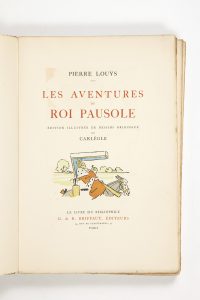 LOUŸS (Pierre). — Les Aventures du Roi Pausole. — Paris, G. & R. Briffaut, s.?d. [1924]. — In-4° broché, couverture illustrée en couleurs.