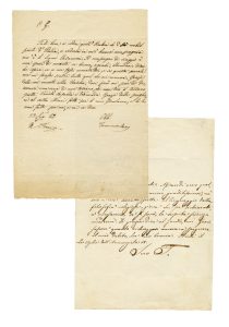 Manoscritti a inchiostro nero. Scritte 2 pagine. 1 lettera è, probabilmente, in copia. Dimensioni varie. (2)