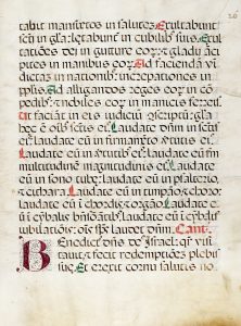 Manoscritti pergamenacei a inchiostro marrone scuro, rosso e verde. 4 capilettera decorati. Grafie tardo gotiche. Buona conservazione. Dimensioni: 525x400 mm. (2)