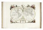 2 [di 4] volumi in folio (mm 385x280). [16], IX-XVI, 50, [2] + 70 tavole a doppia pagina in coloritura; [4], + 49 tavole a doppia pagina in coloritura. Con, nel complesso, 1 frontespizio calcografico a doppia pagina datato 1779, 2 frontespizi incisi datati 1775 (al primo volume) e 1783 (al secondo volume) e 119 carte geografiche a doppia pagina acquerellate. I soli primi due volumi. Macchie alle prime carte del primo volume, gora d'acqua nel margine inferiore delle prime carte del secondo volume. Legatura coeva in piena pergamena rigida con titolo in oro su tassello al dorso. Sguardie rinnovate, alcune macchie ai piatti.