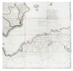 Incisione in rame con coloritura coeva dei confini. 4 fogli intelati di mm 670x700. Dimensioni totali mm 1340x1400. Titolo in basso a sinistra. Contenuta ento custodia originale in cartonato marmorizzato con titolo manoscritto su cartiglio al piatto anteriore. Custodia molto lisa, con mancanze. (1)