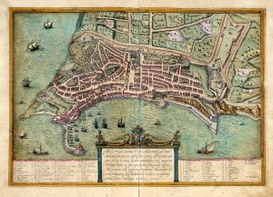 Incisione in rame, in coloritura. mm 335x480. Foglio mm 404x540. Da Civitates Orbis Terrarum. Titolo in basso entro cartiglio, ai lati legenda in 45 punti. (1)