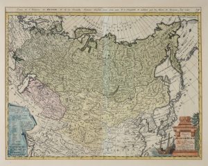 Incisione in rame, in coloritura d'epoca. mm 530x630. Mappa che include l'impero russo e i paesi abitati dai Tartari in Asia e in Europa. (1)