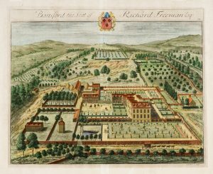Acquaforte in coloritura. mm 350x433 Foglio: mm 410/470x495/625. Tutte le tavole sono firmate al margine inferiore a destra e recano in alto il nome della tenuta rappresentata. Britannia Illustrata, nota anche come Views of Many of the Queens Palaces and also of the Principal Seats of the Nobility & Gentry of Great Britain è una serie pubblicata nel 1707-1709 dedicata alla descrizione topografica del terreno e degli edifici nelle tenute di campagna dell'epoca. 1) Clower Wall The Seat of Francis Wyndham Esq. 2) Battsford the Seat of Richard Freeman Esq. 3) Sneed Park the seat of Joseph Jackson Esq. 4) Stoke Gifford The Seat of John Berkeley Esq. 5) Southam the Seat of Kinard de la Bere Esq. Ottimi esemplari su carta vergellata sottile. (5)