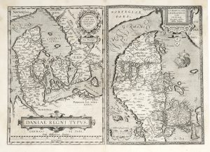 Ortelius Abraham, Daniae Regni Typus /Cornelius Antoniades Descripsit / Cimbricae Chersonesi nunc Iutiae descriptio, auctore Marco Iordano. Antwerp: Plantin, 1595.