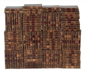 109 volumi in-24° (mm 125x75). Ritratto dell'Autore in antiporta del primo volume di quasi tutte le serie, e 1 frontespizio illustrato e protetto da velina a tutti i volumi. Rare macchie e fioriture, ma nel complesso ottime condizioni. Legatura in piena pelle maculata, con titoli e fregi, talvolta in oro, su tasselli al dorso, dentelles alle unghiature e sguardie marmorizzate. Segni di usura alle cerniere, alcuni tasselli mancanti al dorso e altre mende. (109)