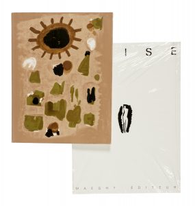 In-folio (mm 315x250). Pagine 111, [42] con 14 tavole a colori fuori testo, di cui 1 a doppia pagina, e 2 tavole litografiche originali a colori fuori testo di Joan Miró e Hans Hartung. Brossura editoriale illustrata da litografia di Roger Bissièr. SI AGGIUNGE: Noise. N. 1. Paris: Maeght, 1985. Brossura editoriale, con titoli e illustrazione in nero al piatto anteriore. Copia ancora cellofanata, mai aperta.