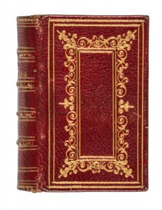 In-32° (mm 50x35). Pagine [6], 499, [1] con 1 ritratto dell'Autore corredato di velina protettiva in principio di volume. Una piccola macchia al frontespizio, per il resto esemplare ottimamente conservato. Bella legatura coeva in pieno marocchino con titolo in oro al dorso; dentelles dorate alle unghiature, sguardie decorate, tagli rossi. Conservato entro scatolina moderna in legno con finiture in ottone. (1)