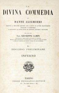 Alighieri Dante, La Divina Commedia [...] ridotta a miglior lezione con l'aiuto di ottimi manoscritti italiani e forestieri. Volume I (-III). Indice alfabetico della Divina Commedia. Torino: Unione tipografico editrice, 1888-1893.