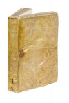 In-folio (mm 300x204). Carte [34], 263, [1]; 18. Marca tipografica al frontespizio di entrambe le parti e capilettera ornati incisi in legno. Testo su due colonne in elegante carattere corsivo; lievi e sporadiche fioriture, brunitura su poche carte, e marginali aloni di umidità a quasi tutto il volume. Primo fascicolo probabilmente da altro esemplare. Legatura in piena pergamena floscia muta, con titolo manoscritto al taglio di testa. Macchie e minime mancanze, ma complessivamente buon esemplare. (1)