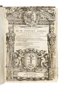 Ariosto Ludovico, Orlando furioso [...] tutto ricorretto, et di nuove figure adornato. Con le annotationi [...] di Ieronimo Ruscelli. In Venetia: appresso Vincenzo Valgrisi, 1568.