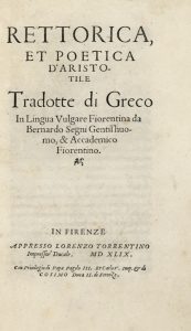 Aristoteles, Rettorica et Poetica Tradotte di Greco in Lingua Vulgare Fiorentina... In Firenze: appresso Lorenzo Torrentino, 1549.