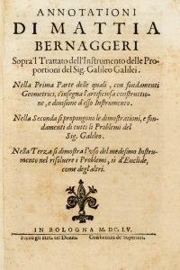 Bernaggeri Mattia, Annotationi [...] sopra 'l trattato dell'instrumento delle proportioni del sig. Galileo Galilei... In Bologna: per gli H. H. Del Dozza, 1655.