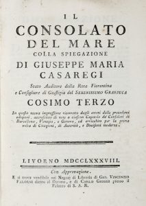 Casaregi Giuseppe Lorenzo Maria, Il consolato del mare colla spiegazione [...] In questa nuova impressione ricorretto dagli errori delle precedenti edizioni... Livorno: e si trova vendibile nei negozj di libreria di Gio. Vincenzio Falorni [...], e di...