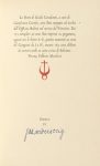 In-8° (mm 210x135). Pagine 110, [4], 1 carta bianca in principio e in fine. Stemma dei Cavalcanti in rosso e grigio al frontespizio. Una delle 4 copie numerate I-IV impresse su Carta Giappone con la firma autografa di Mardersteig, su una tiratura complessiva di 175 copie. Legatura editoriale in piena pergamena verde contenuta entro cofanetto di carta. Esemplare in perfetto stato conservativo. (1)