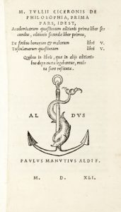 Cicero Marcus Tullius, De philosophia prima pars (-volumen secundum). [Venezia]: Paulus Manutius Aldi f., 1541.