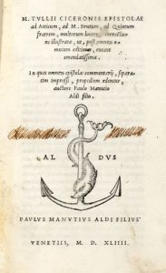 Cicero Marcus Tullius, Epistolae ad Atticum, ad M. Brutum, ad Quintum fratrem... Venetiis: Paulus Manutius Aldi filius, 1544.
