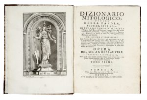Claustre Andre (de), Dizionario mitologico ovvero della favola, poetico, storico, ec. in cui esattamente si spiega l'origine degli dei, de' semidei, e degli eroi dell'antico gentilesimo... Tomo primo (-terzo). Venezia: presso Domenico Ferrarin,...