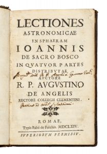 De Angelis Agostino, Lectiones astronomicae in sphaeram Ioannis de Sacro Bosco... Romae: typis Fabii de Falchis, 1664.