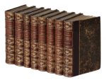 8 volumi in-8° (mm 180x115). Esemplare in barbe, ben conservato. Legatura coeva in mezza tela, con piatti in carta decorata, titoli e fregi in oro entro comparti al dorso a 5 nervetti; sguardie marmorizzate e taglio superiore dorato. Mancanze alle cuffie di pochi volumi e altri minimi difetti. (8)