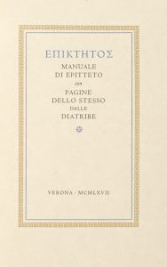 Epictetus, Manuale di Epitteto con pagine dello stesso dalle Diatribe. Verona: [Officina Bodoni], 1967.