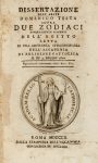 In-4° (mm 183x130). Pagine 49, [1]. Occasionali fioriture. Legatura moderna in pieno cartonato, titolo manoscritto al dorso. SI AGGIUNGE: Testa Domenico, Dissertazione [...] sopra due zodiaci novellamente scoperti nell'Egitto... Roma: dalla Stamperia dell'Accademia, 1802. In-8° (mm 210x132). (2)