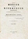 In-4° (mm 250x160). Occasionali fioriture e macchie, privo della carta di ritratto. Legatura coeva in mezza pelle con punte e piatti in carta decorata. Titoli in oro al dorso. SI AGGIUNGE: Id., Del merito e delle ricompense trattato storico e filosofico [...] Tomo primo (-secondo). Filadelfia: s.e., 1830. 2 parti in 1 volume in-4° grande (mm 280x210). (2)