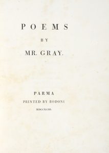 Gray Thomas, Poems. Parma: printed by Bodoni, 1793.
