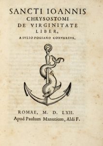 Johannes Chrysostomus, De virginitate. Romae: Apud Paulum Manutium, Aldi F., 1562.