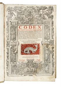 Justinianus, Codex [...] novem libros mythicis imaginibus illustratos complectens. Lugduni: ad Salmandrae, apud Sennetonios fratres, 1549.