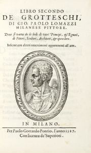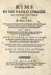 Lomazzo Giovanni Paolo, Rime [...] divise in sette libri. Nelle quali ad imitazione de' i Grotteschi usati da' pittori, ha cantato le lodi di Dio... In Milano: Per Paolo Gottardo Pontio, 1587.