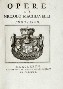 Machiavelli Niccolò, Opere. Tomo primo (-sesto). In Firenze: a spese di Gaetano Cambiagi libraio, 1782-1783.