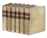 6 volumi in-4° (mm 280x210). Pagine C, 451, [1] + 1 ritratto di Machiavelli in antiporta; [4], 420 + 1 tavola fuori testo ripiegata; V [i.e. III], [1], 490 [2]; [4], 392 + 1 tavola fuori testo ripiegata; [4], 475, 1 bianca; [2], XII, 532, 2 bianche. Splendida copia impressa su carta forte azzurrina, in ottimo stato di conservazione. Legatura in piena pergamena rigida con titoli in oro su tassello al dorso e tagli spruzzati. Piccole mancanze alle cuffie e ai piatti. Al contropiatto di ciascun volume ex-libris di precedente proprietario. (6)