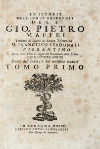 Maffei Giovanni Pietro, Le istorie dell'Indie orientali [...] tradotte di latino in lingua toscana da m. Francesco Serdonati... Tomo primo (-secondo). In Bergamo: appresso Pietro Lancellotti, 1749.