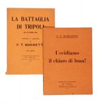 In-8° (mm 215x160). Pagine 23, [1]. Esemplare in buone condizioni. Brossura originale con titoli impressi in nero al piatto anteriore. SI AGGIUNGE: Id., La battaglia di Tripoli. 38° migliaio. Milano: Edizioni Futuriste di 'Poesia', 1912. In-8° (mm 210x150). Pagine [8], 84. Condizioni perfette. Brossura originale con titoli impressi in nero al piatto anteriore. (2)