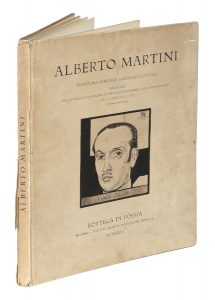 In-folio (mm 410x330). Pagine [12] con 34 tavole fuori testo, di cui 31 numerate e corredate di didascalia al verso della tavola precedente, e 1 sciolta. Bella incisione al frontespizio. Legatura editoriale in cartonato con titolo e ritratto dell'Autore al piatto anteriore; difetti alla cerniera del piatto anteriore, con dorso parzialmente staccato. Una delle 800 copie in nero con un facsimile dell'autoritratto del Martini, su un tiratura complessiva di 1000 esemplari. (1)