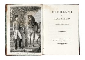 Mazzuchelli Maruli Federico, Elementi di cavallerizza. Milano: presso Pietro Agnelli librajo stampatore in S. Margarita, 1802.